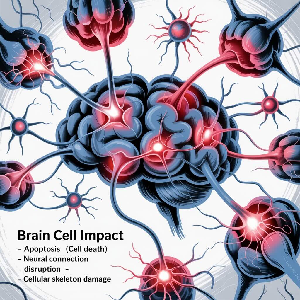 さらに、2010年の細胞レベルの研究¹²では、アセトアミノフェンがラットの脳細胞に「アポトーシス(細胞が自分から死ぬ現象)」を起こすことが明らかになりました。そして2022年の研究¹³では、脳の細胞同士のつながり(神経突起)や細胞の骨組み(細胞骨格)に異常が出ることが分かりました。