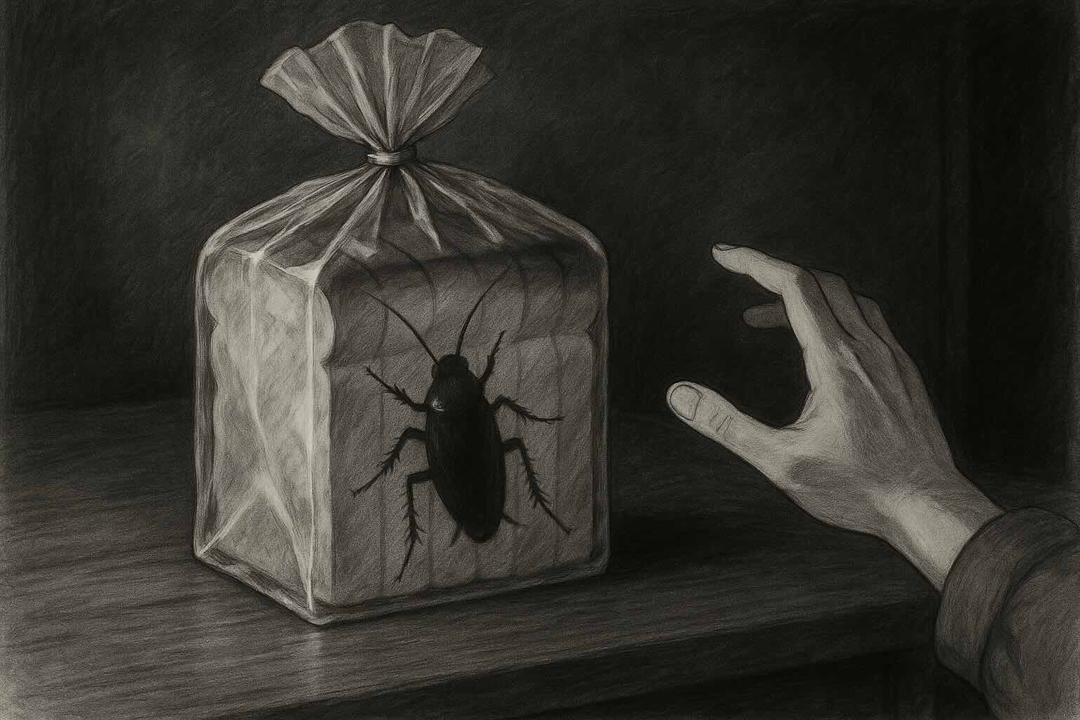 あなたがオンラインで注文した菓子パンが届きました。個別包装を開けようとした瞬間、密閉されたはずの袋の中で、黒々としたゴキブリがカサカサと動いているのを目撃したら・・・。