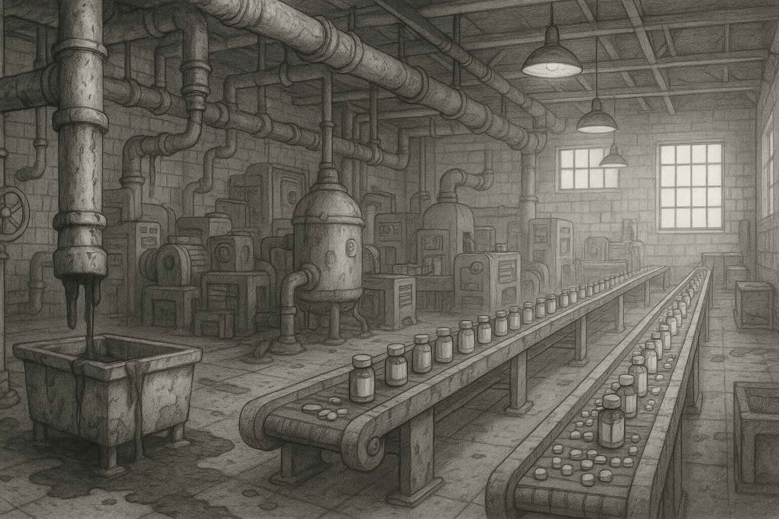 紙の上では、すべてが完璧です。温度管理も適切、品質検査も合格、原料も医薬品グレード——書類だけ見れば、何の問題もありません。しかし実際の工場では、錆びたパイプから液体が漏れ、作業員はマスクもせずに有毒物質を扱い、工業用化学物質が医薬品に混入しているのです(1)。