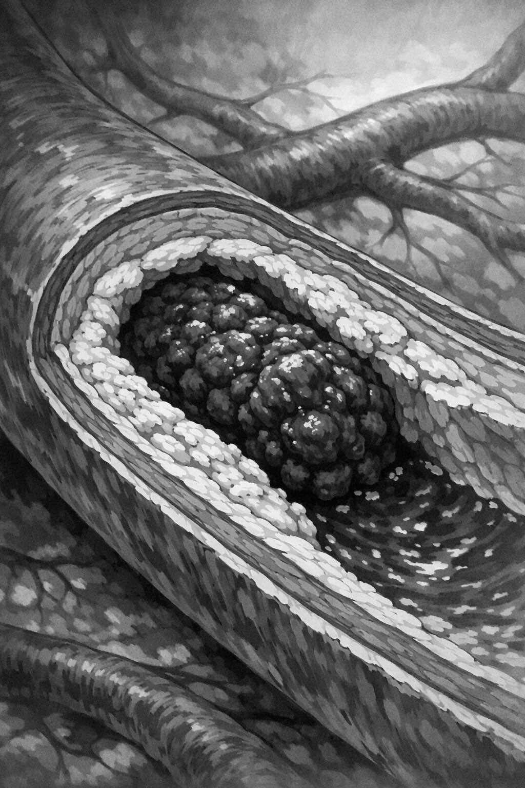 内膜肥厚とは、動脈の内壁が傷ついた際に血管平滑筋細胞が過剰に増殖してしまう現象で、これは傷口を治そうとするあまり、かさぶたが厚くなりすぎて逆に血液の流れを妨げてしまうようなものです。この血管壁の肥厚は、虚血(血流不足)や血栓形成といった深刻な心血管系合併症を引き起こす前兆となります。