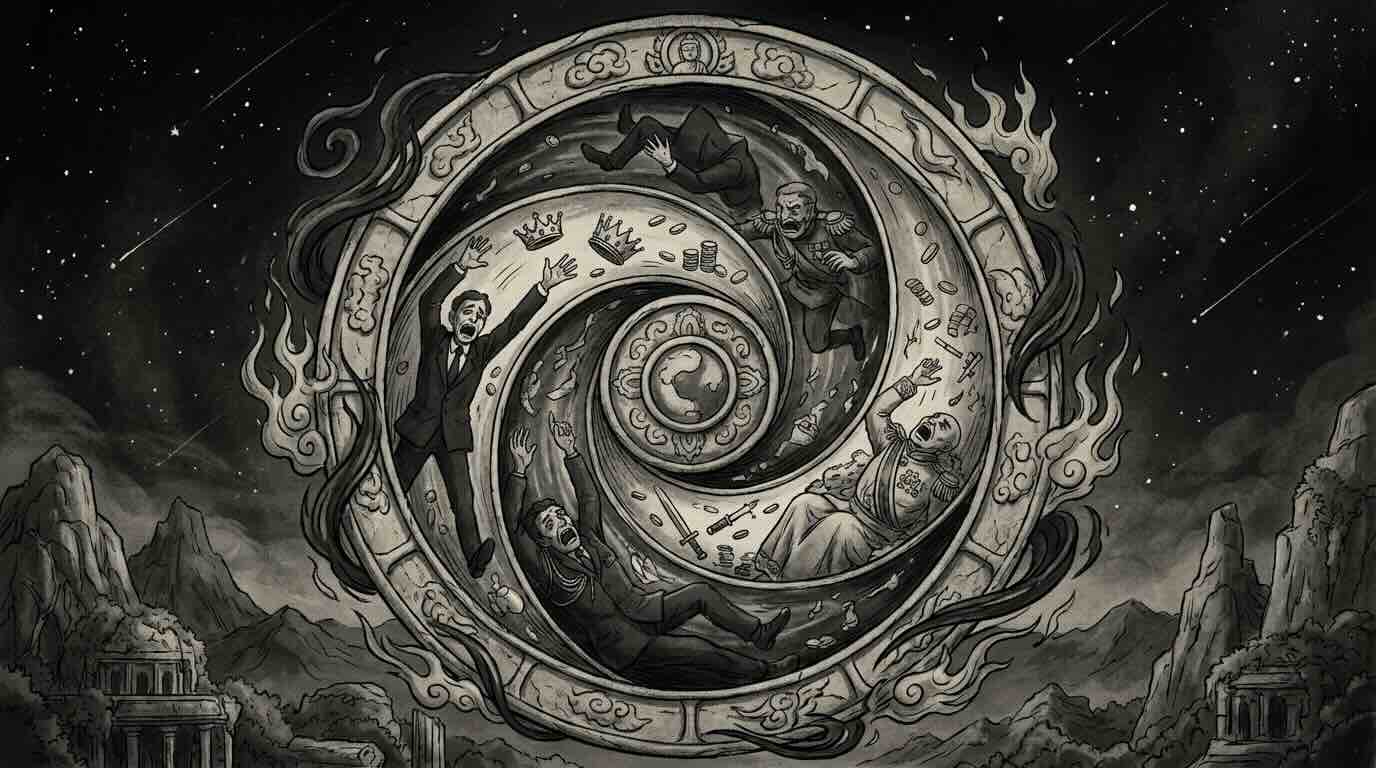 しかし、古代から続く自然の摂理は、決して彼らを見逃しません。今世で得た煩悩による悪業への報いは、永遠の苦しみから逃れらない輪廻(サンサーラ)へ彼らを閉じこめます。これは人智を超えた自然の原理です。