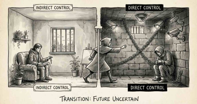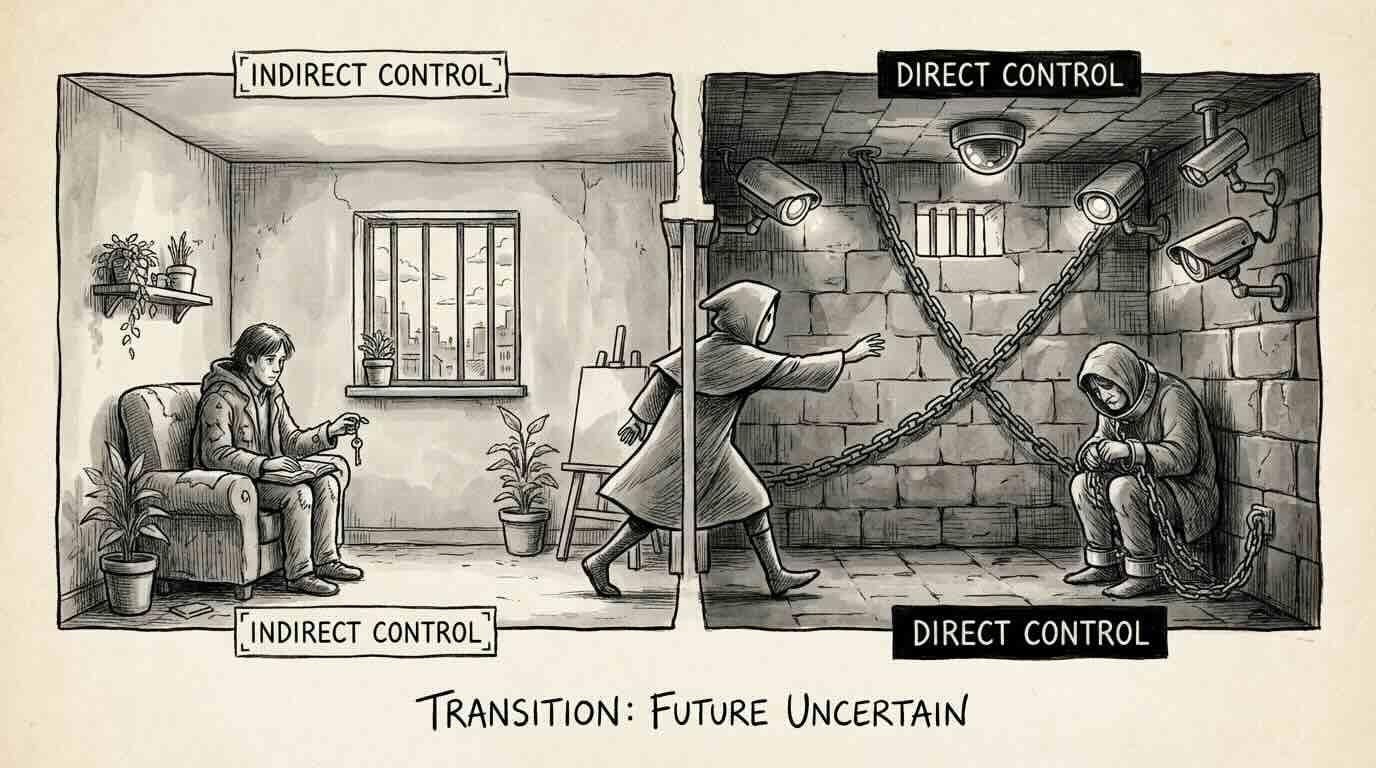 例えるなら、今は「監視付きのアパート暮らし」ですが、これが「24時間監視される独房暮らし」に転落するようなものです。